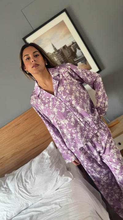Mila es una pijama confeccionada con seda española, una tela súper suavecita y fresca. Su estampado floral le da un estilo romántico y se convertirá en tu pijama favorita. La tuvimos hace unos años en versión verano y ahora llegó para quedarse en versión invierno.