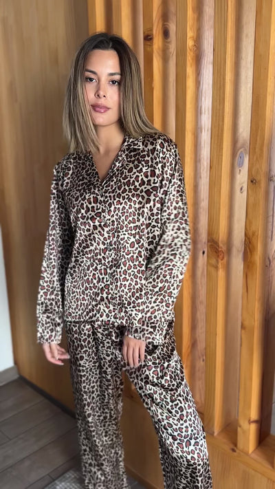Nuestra pijama Wild Dreams ha sido diseñada para todas esas animal print lovers y porque en Innata también somos amantes de este print. Amamos la combinación de colores y su estilo elegante y único. Está confeccionada con seda española, una tela súper suavecita y fresca.